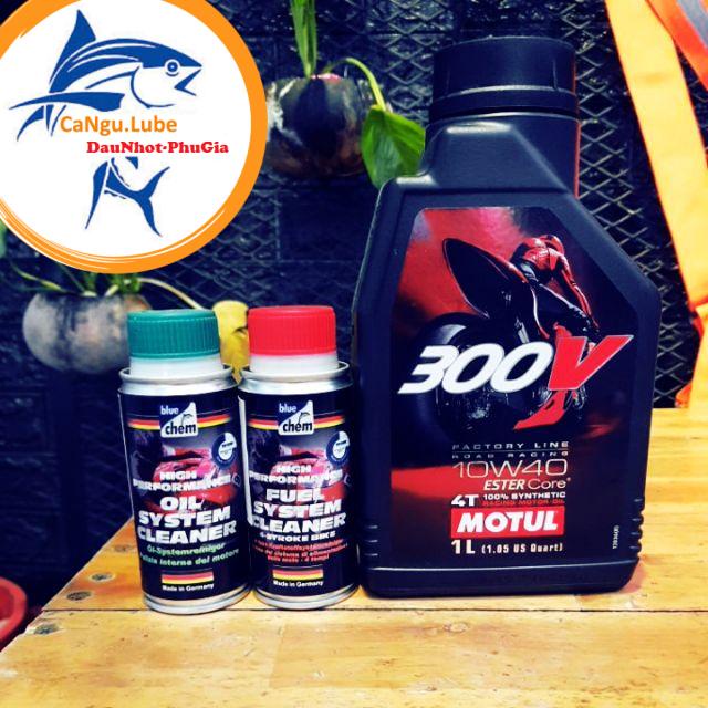 [Cham đáy] nhớt motul 300v 10W40, nhớt cao cấp và súc động cơ, vệ sinh kim phun bluchem