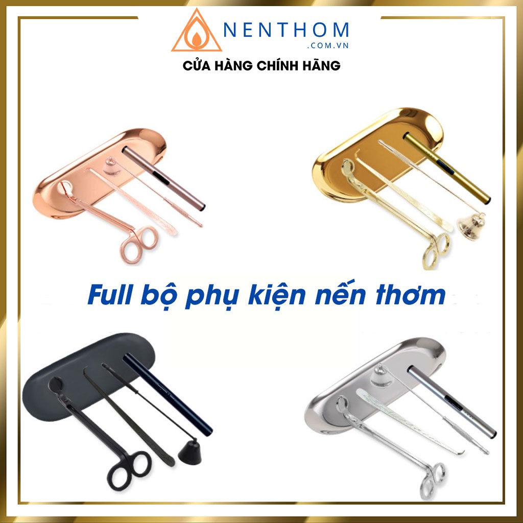 Bộ phụ kiện chăm sóc nến phong cách cổ điển cao cấp chuyên dụng không thể thiếu cho người chơi nến chuyên nghiệp.Bộ phụ kiên nến thơm của Nhà nenthom.com.vn là bộ phụ kiện cao cấp, được sản xuất bằng thép không gỉ, mạ crom sáng bóng. Khác với những bộ phụ kiện được bày bán tràn lan trên thị trường, chúng tôi luôn nhập những sản phẩm tốt nhất từ những công ty sản xuất chất lượng cao đem đến tay người tiêu dùng chất lượng hoàn hảo.