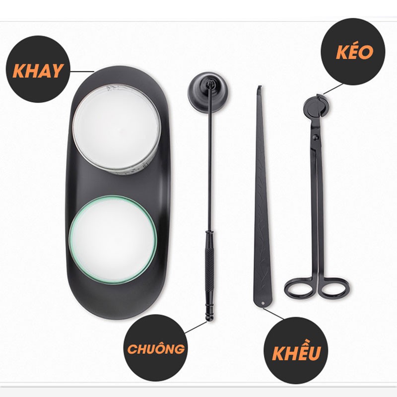 Bộ phụ kiện bốn món dùng cho nến thơm không chỉ giúp bạn chuyên nghiệp hơn mà còn thể hiện được tính cách cá nhân, giúp decor cho căn nhà của bạn đẹp hơn và mộng mơ hơn.
