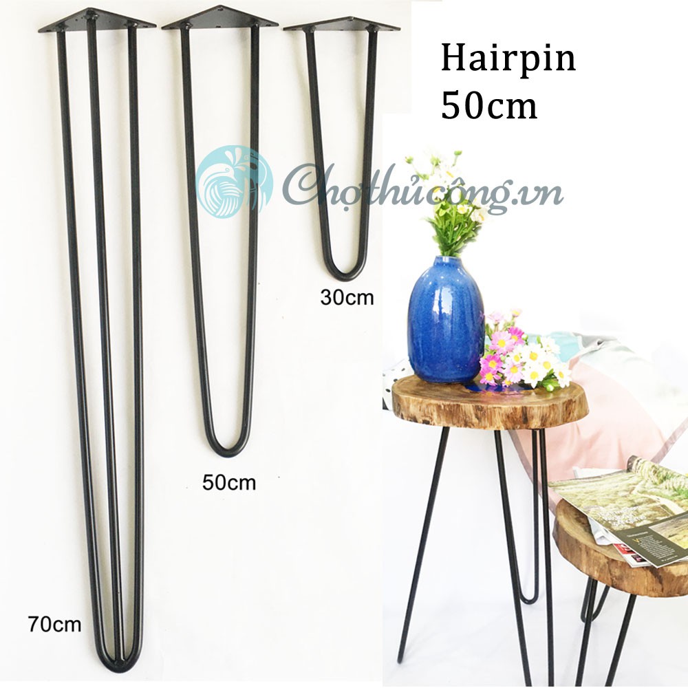 Chân bàn Hairpin Cao 50cm (DIY) - chân sắt phủ Sơn tĩnh điệnChân bàn sắt Hairpin thường được kết hợp với mặt bàn gỗ tự nhiên hoặc gỗ lũa tạo nên phong cách độc đáo, mộc mạc và vintage.