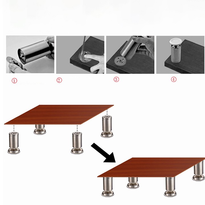 - Lắp đặt dễ dàng, xác định vị trí cần gắn chân bàn,tủ. Gắn phần nắp bịt vào đúng vị trí cố định băng ốc, vít. Lần lượt gắn phần thân và đế để hoàn thành.