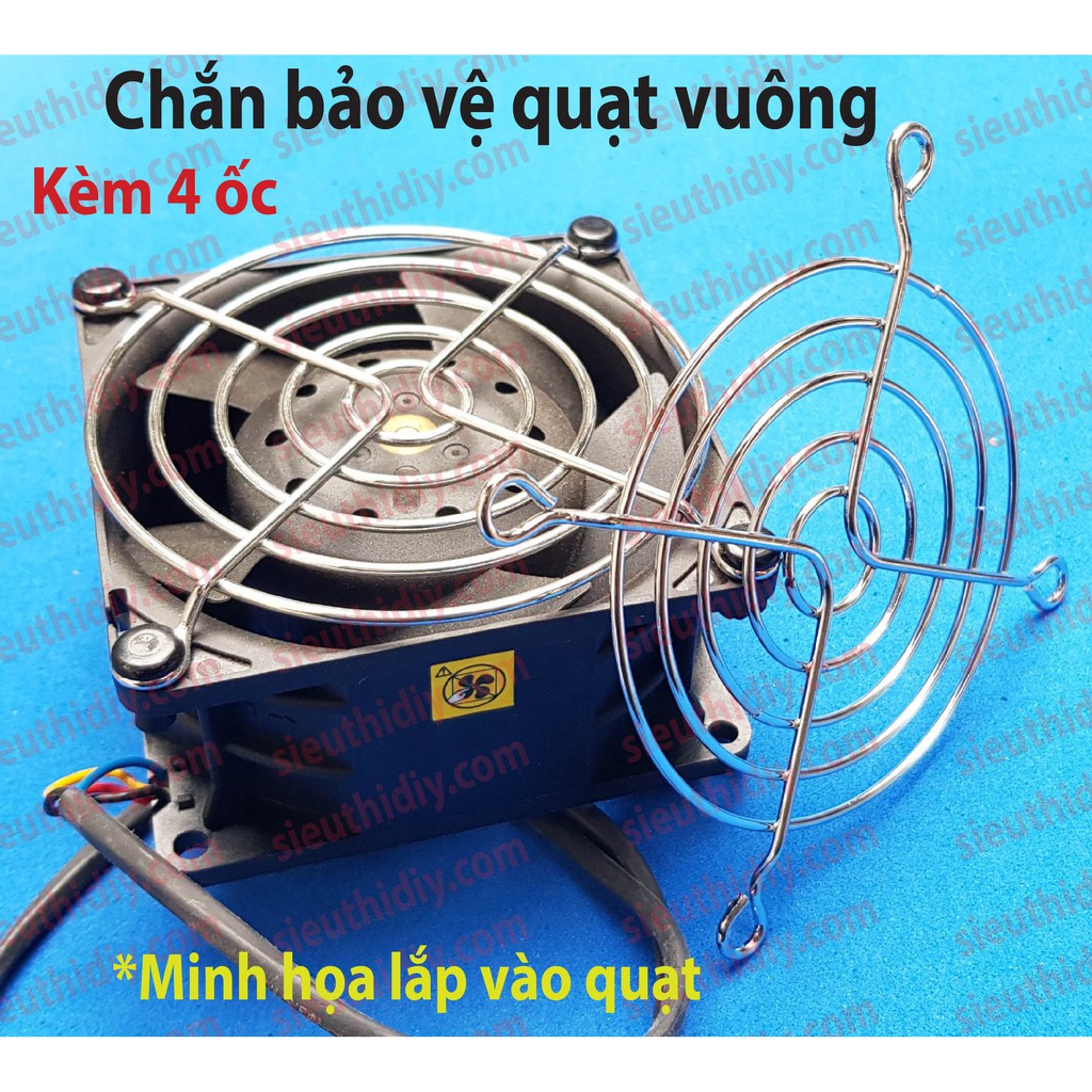 Chắn bảo vệ quạt vuông bằng Thép-Inox 304 4-12cm:- Dùng lắp vào quạt vuông để bảo vệ cánh quạt khỏi bị gẫy do vật khác chạm vào (đối với quạt thông gió cũng giúp chống chuột chui vào), bảo vệ người sử dụng tránh bị cánh quạt chém vào tay.