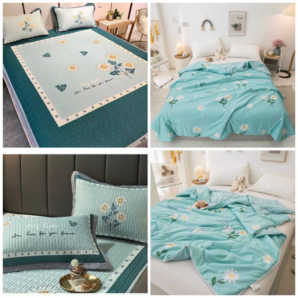 Nhà cửa & Đời sống > Chăn ga gối nệm > Chiếu điều hòa || Bộ Chăn Chiếu Điều Hoà Cao Su Non - Cúc Họa Mi XanhCòn hàng