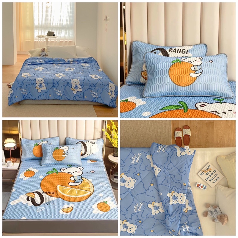 Giới thiệu Bộ Chăn Chiếu Điều Hoà Cao Su Non - Gấu Ôm Cam