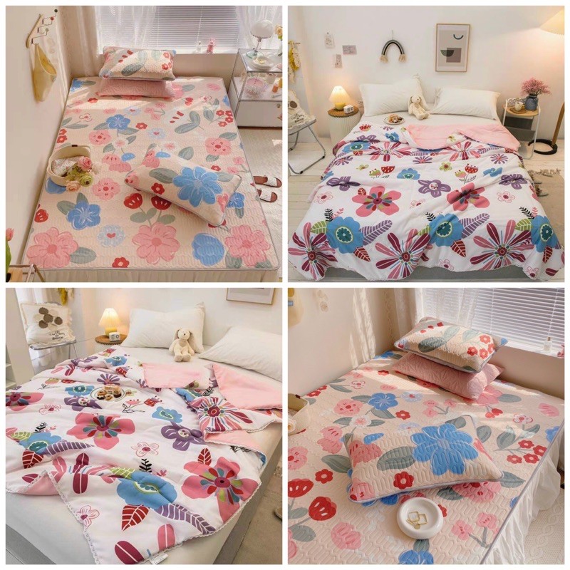 Nhà cửa & Đời sống > Chăn ga gối nệm > Chiếu điều hòa || Bộ Chăn Chiếu Điều Hoà Cao Su Non - Hoa Sắc MàuCòn hàng