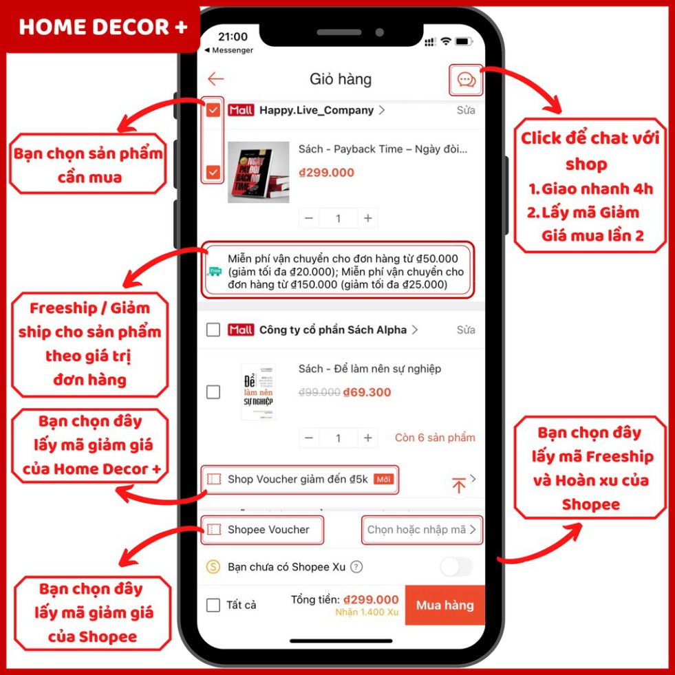 ⚡️Nhận mã Freeship mới nhất trong phần chat của shop theo các dịp lễ và siêu sale Shopee.