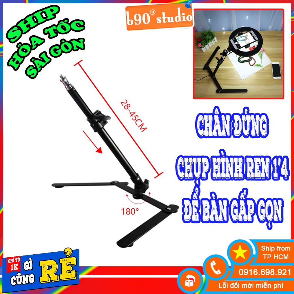Chân chụp hình để bàn gấp gọn dùng gắn đèn live hỗ trợ chụp ảnh sp, ảnh thức ăn ren 1/4