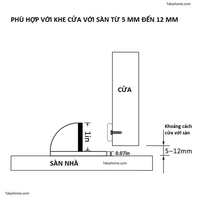 * Kích thước chặn cửa gắn sàn:
