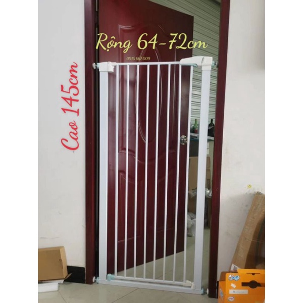 Chắn cửa cao 1m45 rộng 67-74cm KHÔNG khoan tườngvới chiều cao lý tưởng bé không thể mở ra được. cũng như vật nuôi không thể nhảy ra.