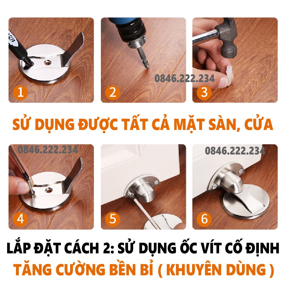 👉 2. Dùng ốc vít bắt vào cửa và khoan nở bắt sàn hoặc tường. Shop khuyến cáo khách hàng nên sử dụng khoan vít để sản phẩm được cố định chắc chắn nhất.