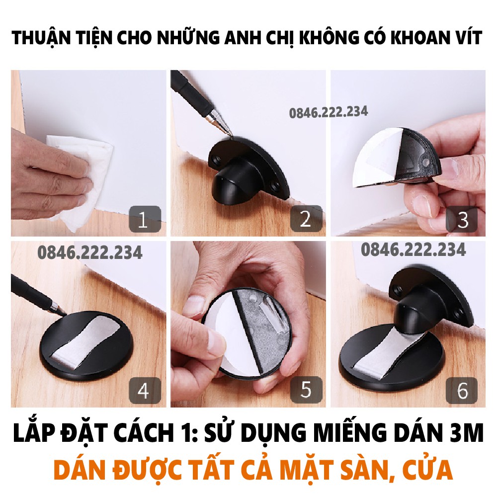 - Chặn cửa vô hinh kèm theo cả miếng dán 3M và ốc vít để cố định.