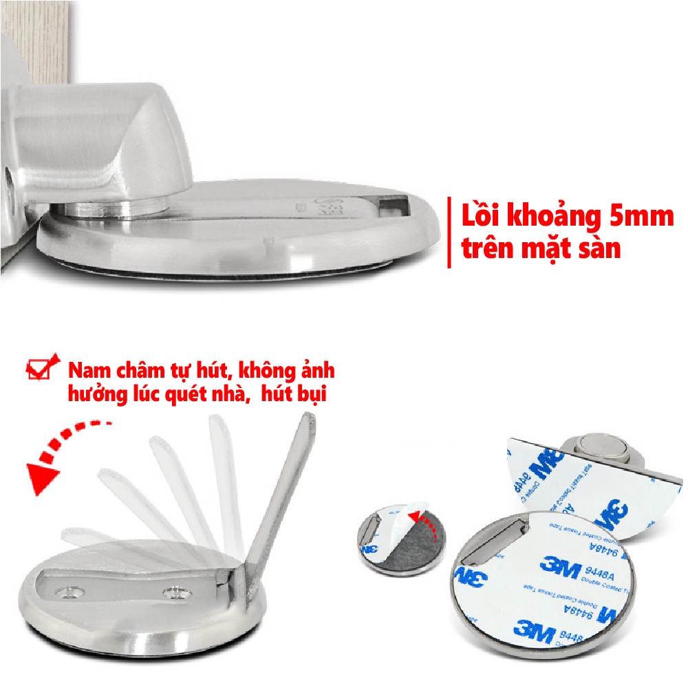 - Tiện ích: Chặn cửa inox thông minh có hít Nam Châm chống va đập bảo vệ cửa, thiết bị nội thất