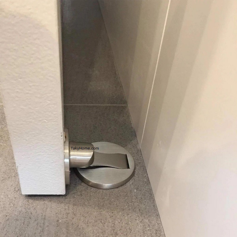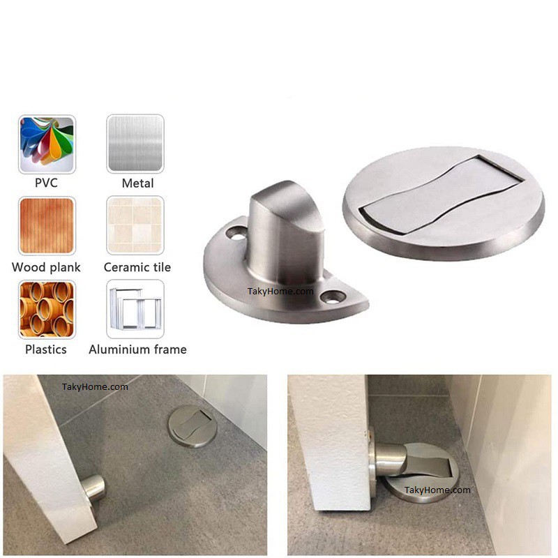 - Chặn cửa hít nam châm bao gồm 2 bộ phận: 1 bộ phận gắn vào cửa có nam châm, 1 bộ phận gắn dưới sàn chỉ cao 5 mm, nên ko gây vướng.
