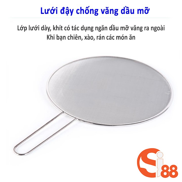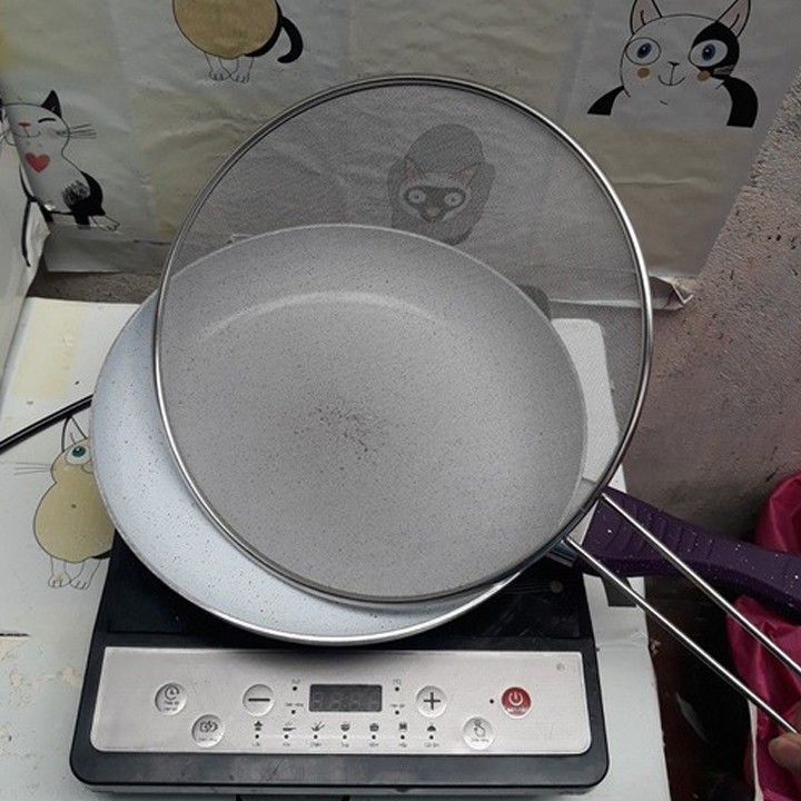 • Lưới đậy chống văng dầu mỡ được thiết kế hình tròn, dưới dạng một lớp lưới dày khít có tác dụng ngăn dầu mỡ văng ra ngoài khi bạn chiên, xào, rán các món ăn.