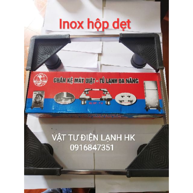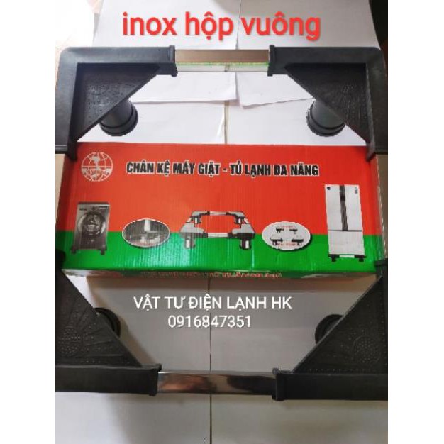 -Chân Kệ Tủ Lạnh làm bằng inox + nhựa chắc chắn, có thể thay đổi kích thước. Được sản xuất từ chất liệu inox cao cấp đảm bảo chịu được sức nặng của chiếc máy giặt.- Thay đổi được kích thước chiều dài, chiều rộng của chân kệ máy giặt, max là 80cm, phù hợp với nhiều loại máy giặt, tủ lạnh.