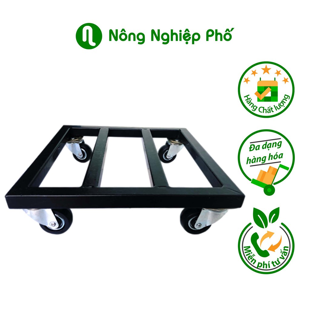 Chân đế đỡ chậu hoa, cây kiểng có khung được làm bằng sắt kẽm hộp nhúng nhựa bên ngoài, bền đẹp và rất vững chắc, không lo rỉ sét, có thể chịu được trọng lượng lên đến 80kg - 100kg. Bên cạnh đó, chân đế đỡ được trang bị thêm trục bánh xe xoay 360 độ giúp bạn dễ dàng, tiện lợi trong việc di chuyển các chậu cây.