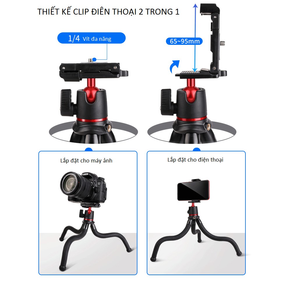4. chung vít 1/4 inch: thích hợp cho iPhone, cho iPad, cho Gopro, máy ảnh SLR, máy thẻ.