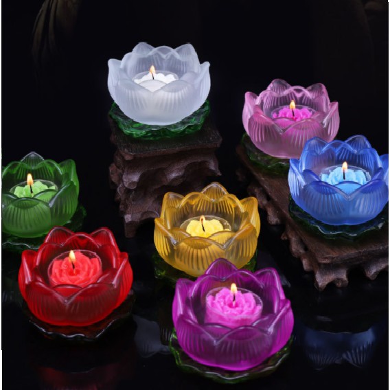 Nhà cửa & Đời sống > Trang trí nhà cửa > Nến & đồ đựng nến || Chân đế HOA SEN lưu ly dày 7 màu_Video(để nến,đèn cầy tealing gió khó tắt...)Còn hàng