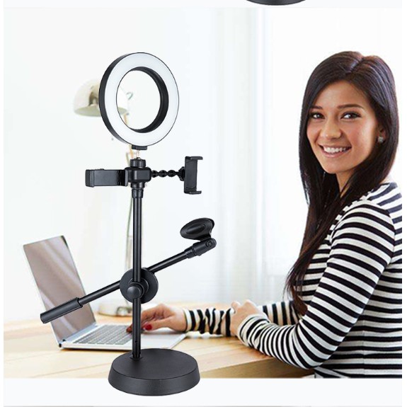 ☀️ Chân đế kẹp 2 điện thoại kèm đèn LED siêu sáng dùng cho live stream chuyên nghiệp▶ Bạn live stream facebook để nói chuyện với bạn bè, bạn livestream bán hàng online ... Bạn phải loay hay kiếm chỗ để điện thoại, đủ ảnh sáng, góc hình đẹp quá khó, thỉnh thoảng điện thoại lại bị rơi, cầm tay thì quá mỏi luôn. Sản phẩm Chân đế kẹp điện thoại và mic kèm đèn LED dùng livestream chuyên nghiệp của #E.Martshop là sự lựa chọn giúp bạn 1 giải pháp 5 trong 1 với giá đỡ kẹp 2 điện thoại 1 để livestream 1 để lấy nhạc và 1 kẹp mic hát live cộng thêm có đèn LED 3 in 1 kích thước lớn ánh sáng mạnh giúp khách hàng, bạn bè thấy bạn chuyên nghiệp và đẹp hơn