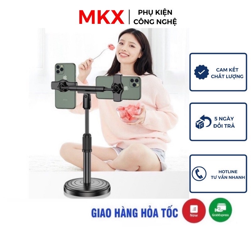 Chân Đế Kẹp Điện Thoại 2 Đầu Kèm Đèn Livestream Để Bàn Tiện Lợi Xoay 360 Độ Dùng Được Cho Iphone, Samsung