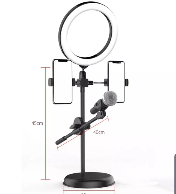 TẶNG NGAY MỘT MÓN QUÀ KHI ĐẶT HÀNGBộ sản phẩm kẹp Mic livestream để được hai điện thoại cùng lúc xoay 360 độ tuỳ ý. Ngoài ra còn có đèn LED có nút chỉnh sáng hai màu vàng - trắng đầu cắm USB tiện lợi. Đế để bàn chắc chắn, chất liệu kim loại chống gỉ 👍🏻