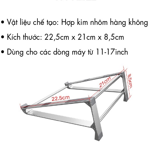Loại I: KỆ ĐỠ MACBOOK NHÔM GÓC 30 ĐỘ