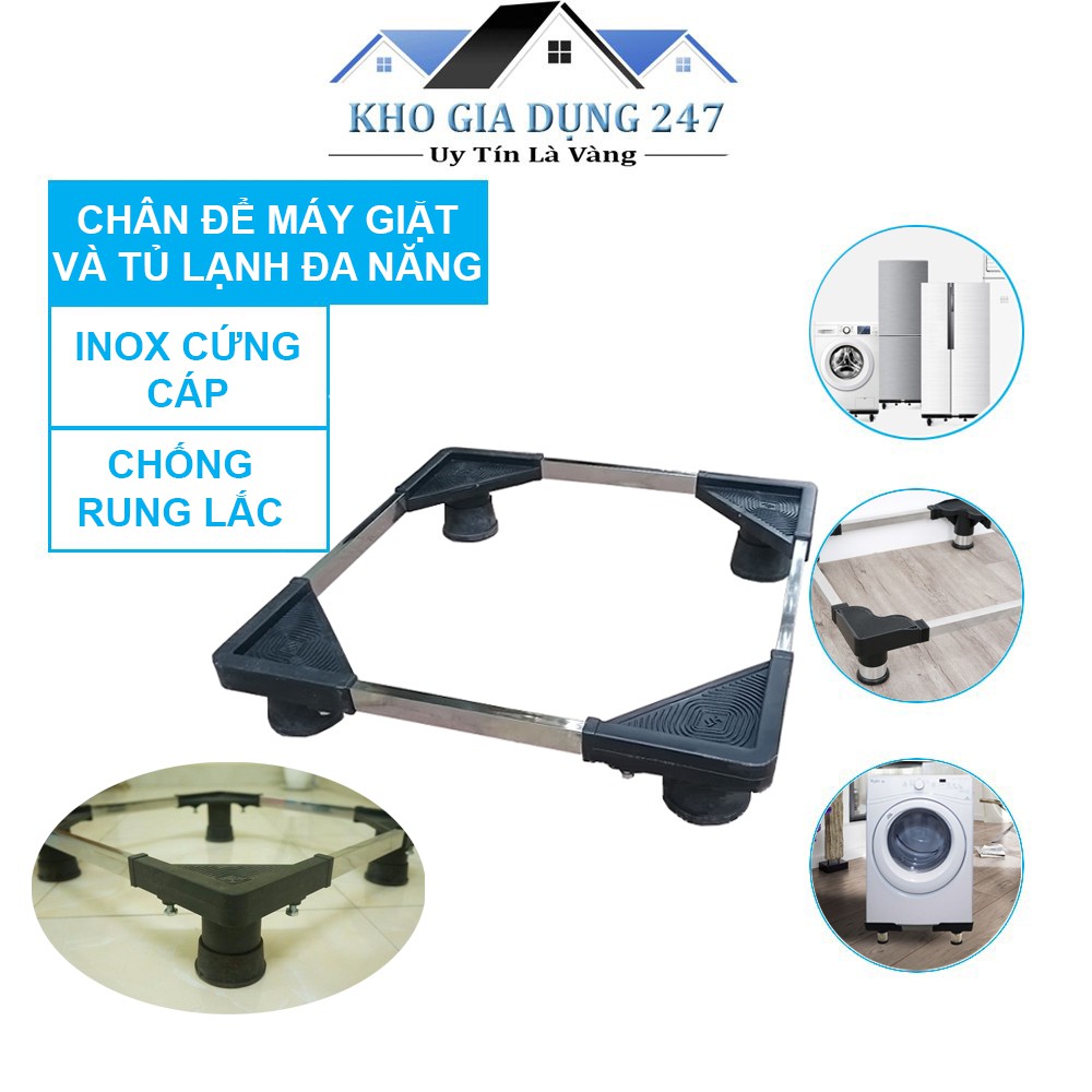 ✨Chân đế máy giặt và tủ lạnh đa năng✨💥Chất liệu inox dầy cứng cáp, bền đẹp, khớp nối bằng nhựa hạt đúc, có vít vặn cố định, chân bọc đế cao su chống trơn trợt rất chắc chắn.