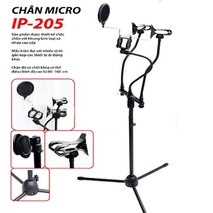 Chân micro đứng có kẹp điện thoại IP - 205 có kèm 2 kẹp điện thoại