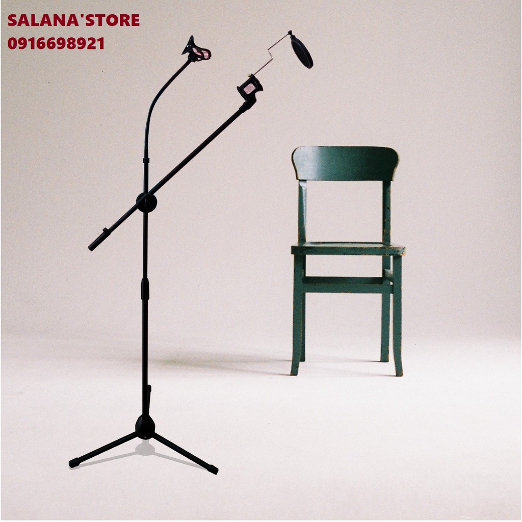 Chân Đế MicroPhone Boom Mic Stand Đứng Có Giá Đỡ Điện Thoại Tăng Giảm Chiều Cao Boom Mic Stand