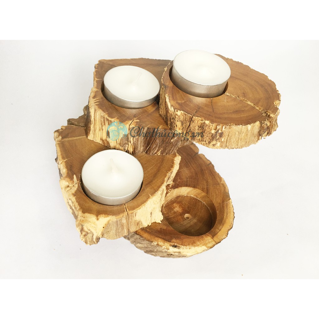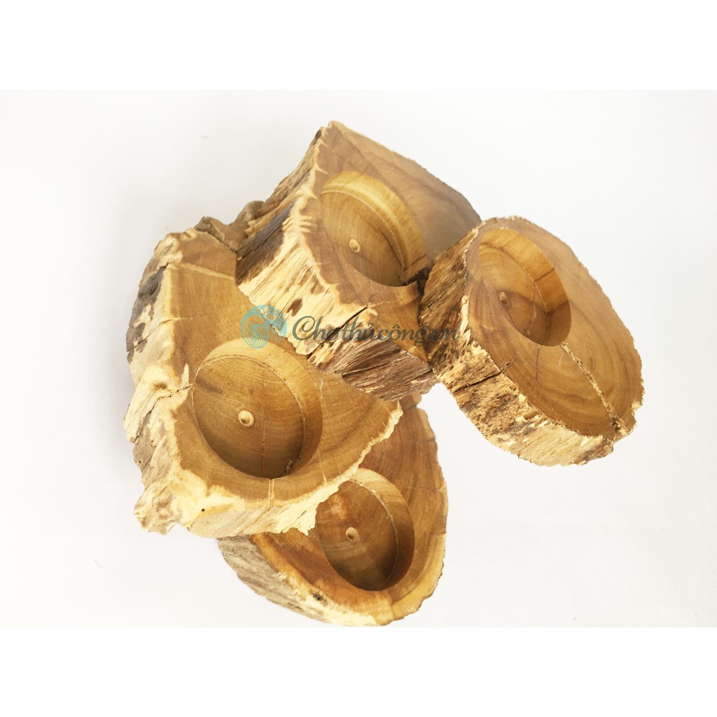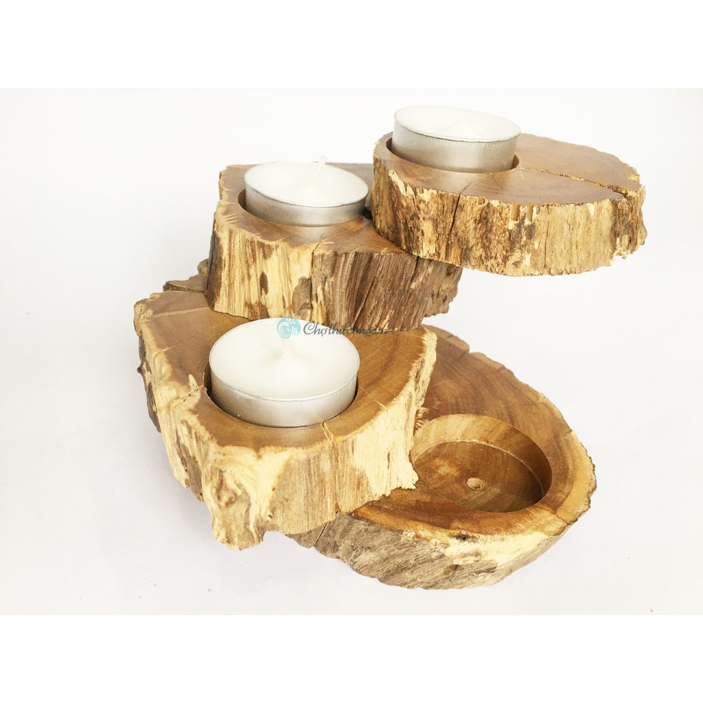 Chân đế nến bằng gỗ tự nhiên 4 tầng (12x12cm) phong cách vintage