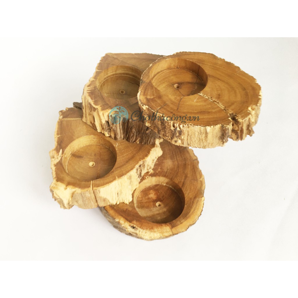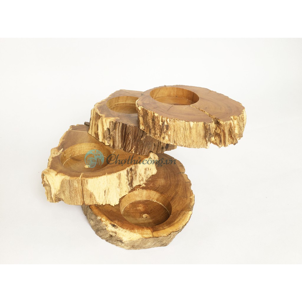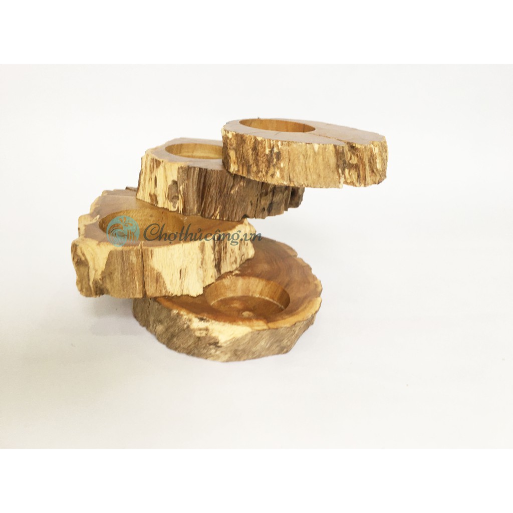 Chân đế nến bằng gỗ tự nhiên bền chắc có 4 tầngChân đế nến được kết hợp từ nhiều khoanh gỗ tự nhiên.