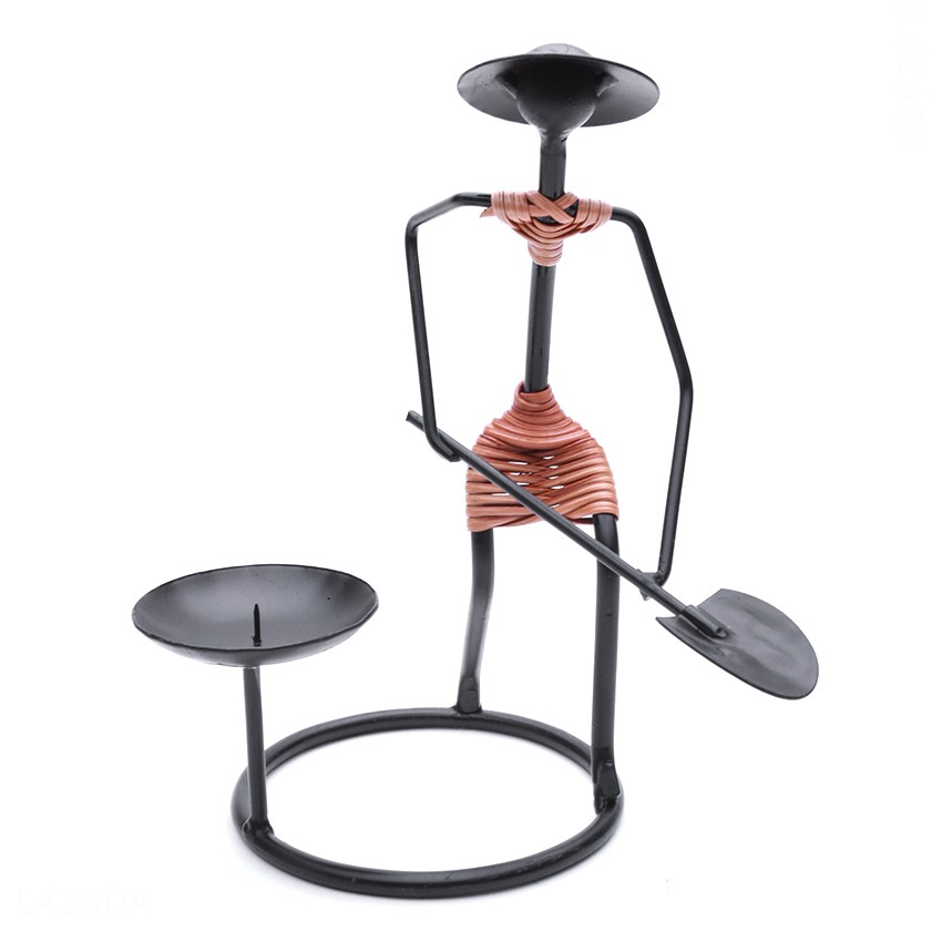 • Chân đế nến làm bằng sắt uốn mỹ thuật được sáng tạo theo hình ảnh người cầm xẻng - một hình ảnh rất đời thường mang đặc điểm Việt Nam. Sản phẩm được phủ sơn tĩnh điện chống trầy xướt và gỉ sét giúp tăng độ bền.