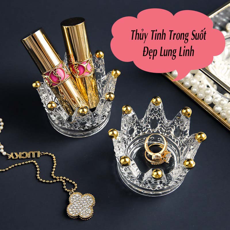 Chân đế nến thủy tinh hình vương miện trang trí chụp Nail, đạo cụ chụp hình sản phẩm