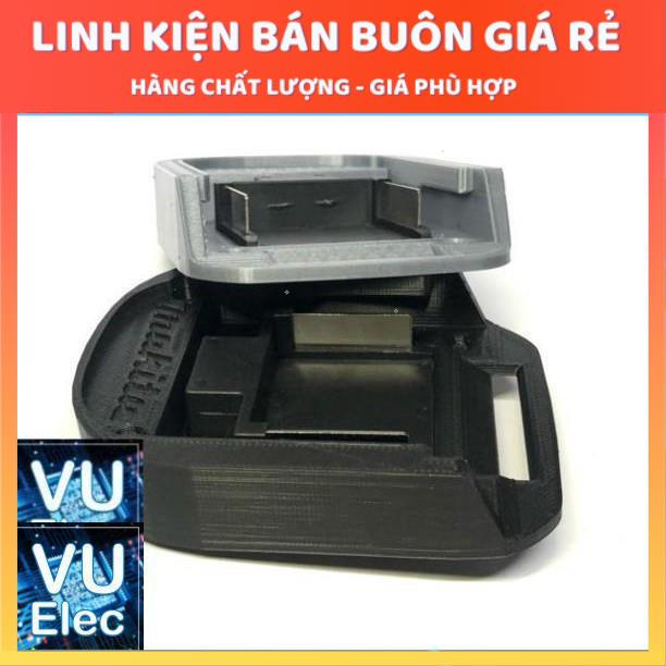 Đế chuyển pin makita 14.4v - 18V in 3D bao gồm tiếp điểmDùng để gắn vào các loại máy khác có cùng điện áp 14.4v - 18V để xài pin makita. hoặc lấy nguồn từ pin makita 14.4v - 18v cho các ứng dụng khác.