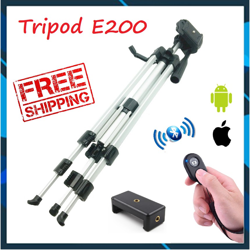 CHÂN ĐẾ TRIPOD E200 CAO 1M15 - TẶNG Giá kẹp điện thoại 002 + Remote chụp hình Bluetooth