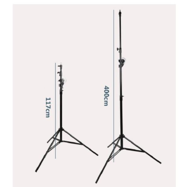 Bộ chân đèn 2.1 với tay treo đèn 4m giá rẻ được làm từ hợp kim nhôm cao cấp, chiều dài thẳng đứng là 4m, chiều dài thanh ngang là 2.15m. Đầu ốc 1/4 là 3/8 có thể gắn micro thu âm hoặc gắn các loại đèn quay phim chụp ảnh.THÔNG SỐ KỸ THUẬT: