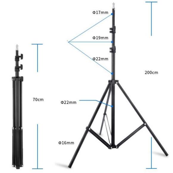 Chân đèn là một trong những phụ kiện quan trọng trong các studio hoặc đi dã ngoại. Chân đèn được thiết kế bởi 3 khớp nối hợp kim nhôm cao cấp cho sức chịu tải cao.THÔNG SỐ KỸ THUẬT: