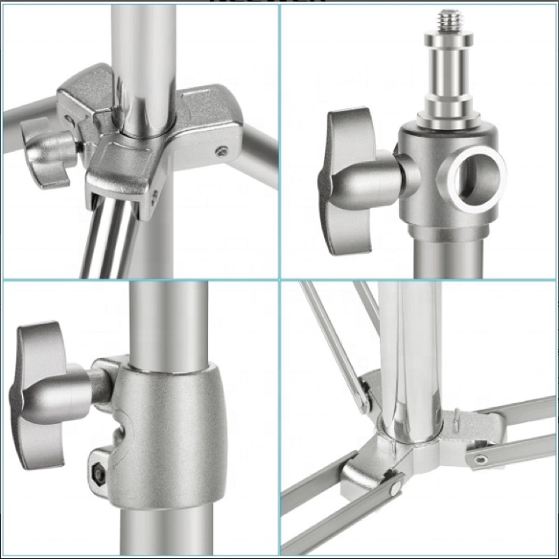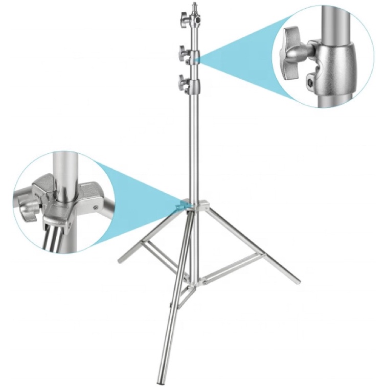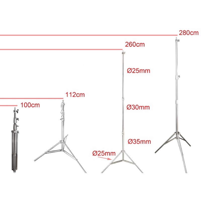 Cấu tạo từ chất liệu Inox cao cấp, chân có thể chịu được sức nặng của các loại đèn Studio và các phụ kiện một cách chắc chắn.