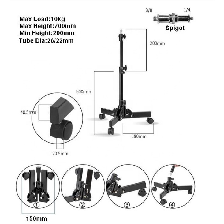 Giới thiệu Chân Đèn Inox Qihe J168D baby tải 10kg (Chân gầm)