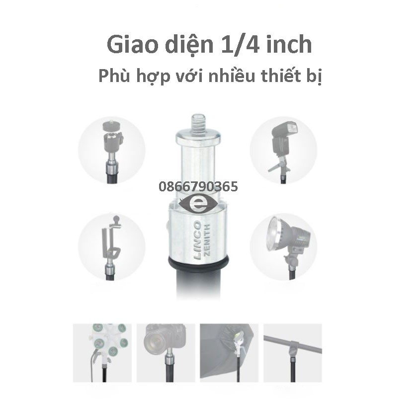 Chân đèn stuido Linco cấu tạo từ thép chất lượng cao, rất chắc chắn và bền đẹp theo thời gian.Tiêu chuẩn 1/4 icnh có thể phù hợp với nhiều thiết bị. Bạn có thể sử dụng nó như một chân đèn hay đơn giản là 1 chiếc tripod.