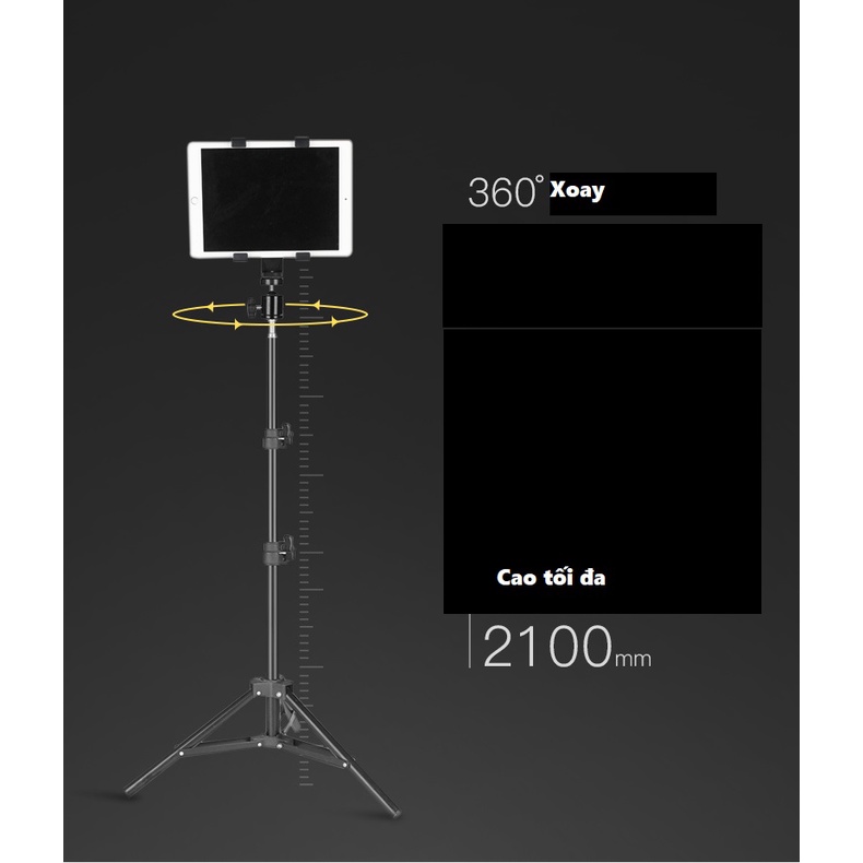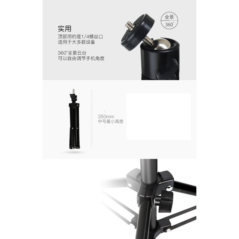 ✔️Chân 2: Cao 2m1 bao gồm đầu bi kẹp điện thoại và túi đựng