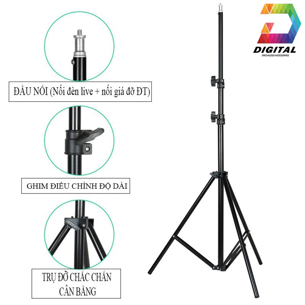 Chân Đèn Livestream, Studio, Đèn Flash Hỗ Trợ Quay Phim, Chụp Ảnh Cao 210cmĐặc điểm nổi bật: