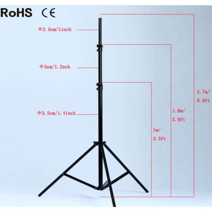Chân đèn là phụ kiện quan trọng trong các studio bởi tính gọn nhẹ dễ dàng di chuyển mang vác. Chân đèn 2,8m được thiết kế bởi 3 khớp nối hợp kim nhôm cao cấp, chịu tải trọng caoKích thước thông số chân đèn: