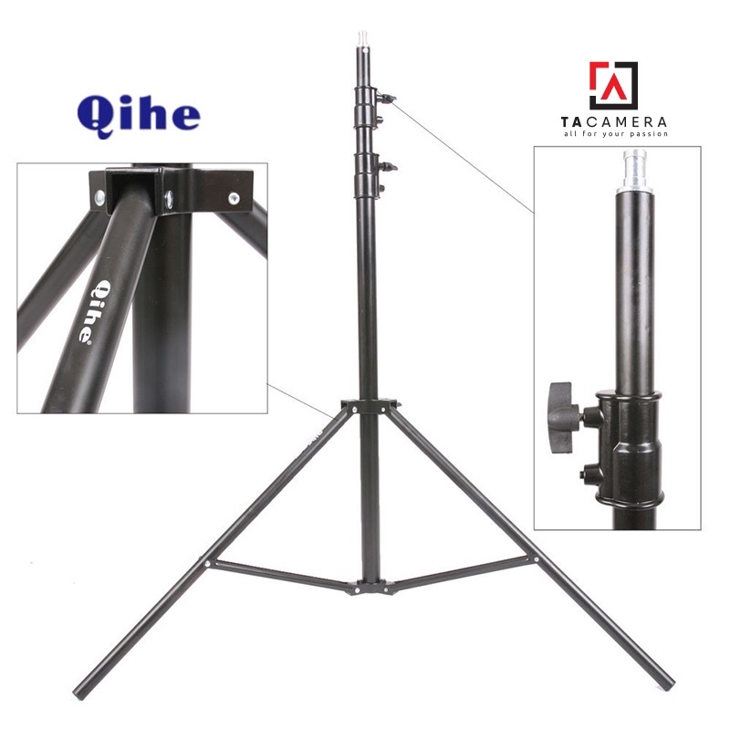 TA Camera: Chân Đèn Lớn Qihe 280cm - Chính Hãng- Được cấu tạo từ hợp kim alluminium cao cấp, chân có thể chịu được sức nặng của các loại đèn Studio và các phụ kiện một cách chắc chắn.