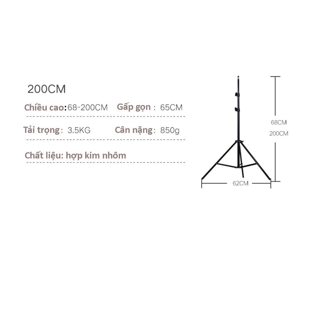 Chân đèn studio đa năng dùng chụp ảnh, quay phim, livestream cao 2 mét,tùy chỉnh độ cao