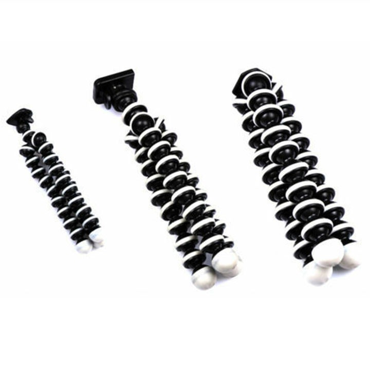 Chân địa hình đen trắng loại to- Được thiết kế đặc biệt để có thể gắn vào hầu hết các địa hình khác nhau, từ mỏm đá, thân cây, dây thép v.v…, chân máy này luôn đem lại sự ổn định tối đa cho thân máy. Nếu là nhiếp ảnh gia yêu thiên nhiên và có máu phiêu lưu thì bạn nên tậu ngay cho mình một chiếc