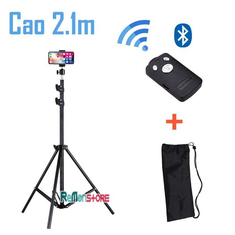 Điện Thoại & Phụ Kiện > Phụ kiện > Phụ kiện selfie > Điều khiển chụp hình || [Mã 273ELHA100K0 hoàn 7% đơn 500K] Chân điện thoại livestream cao 2m + Remote bluetooth Yunteng + Túi đeoCòn hàng