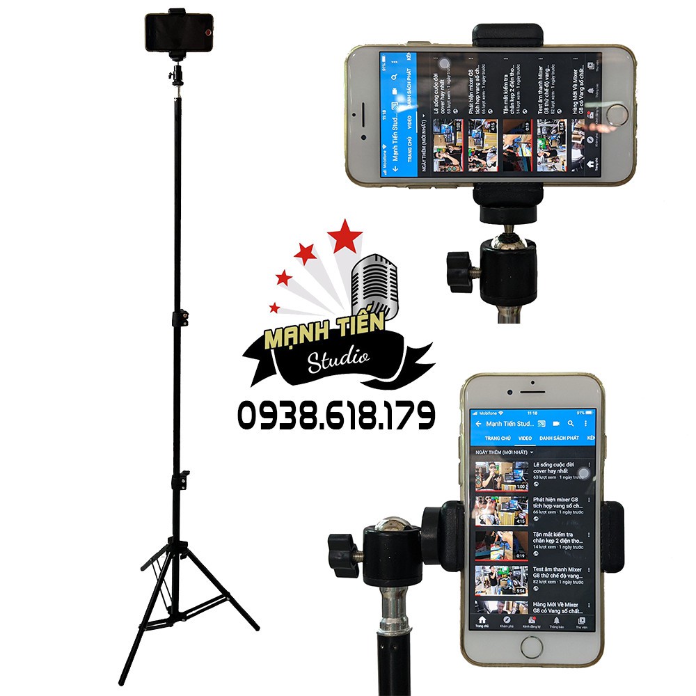 Chân điện thoại livestream tik tok Chân đèn chụp ảnh, quay phim, đầu bi Q29 + đầu kẹp điện thoại cao 2m1