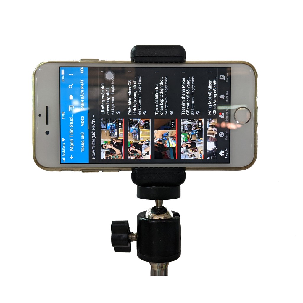 Điện thoại được gắn trên giá đỡ giúp cố định điện thoại, chống rung giật để người xem livestream cảm thấy thoải mái.
