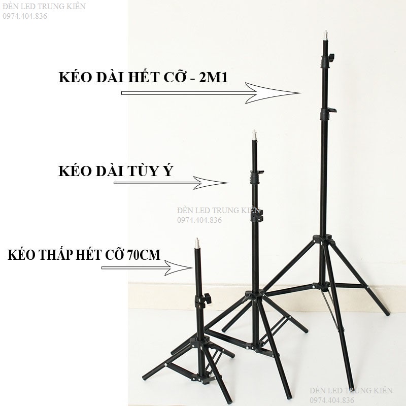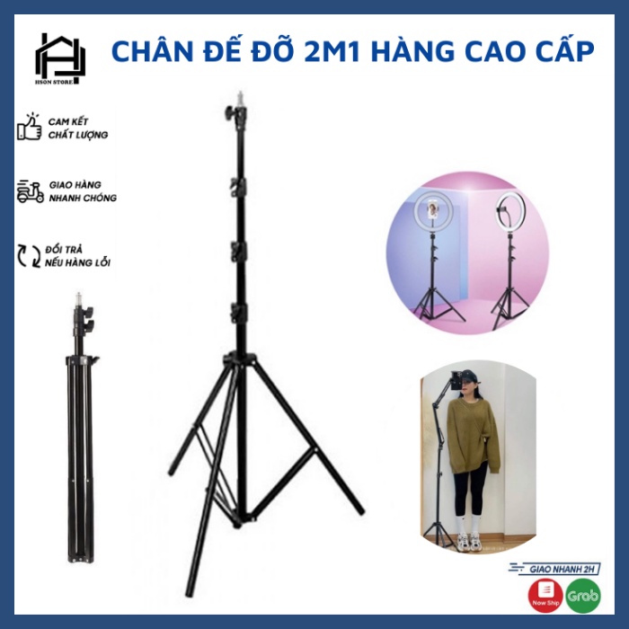 Chân đỡ đèn livestream Cao Cấp chiều cao tối đa 2m1, Đế 3 chân loại to siêu chắc chắn đa năng tiện dụng